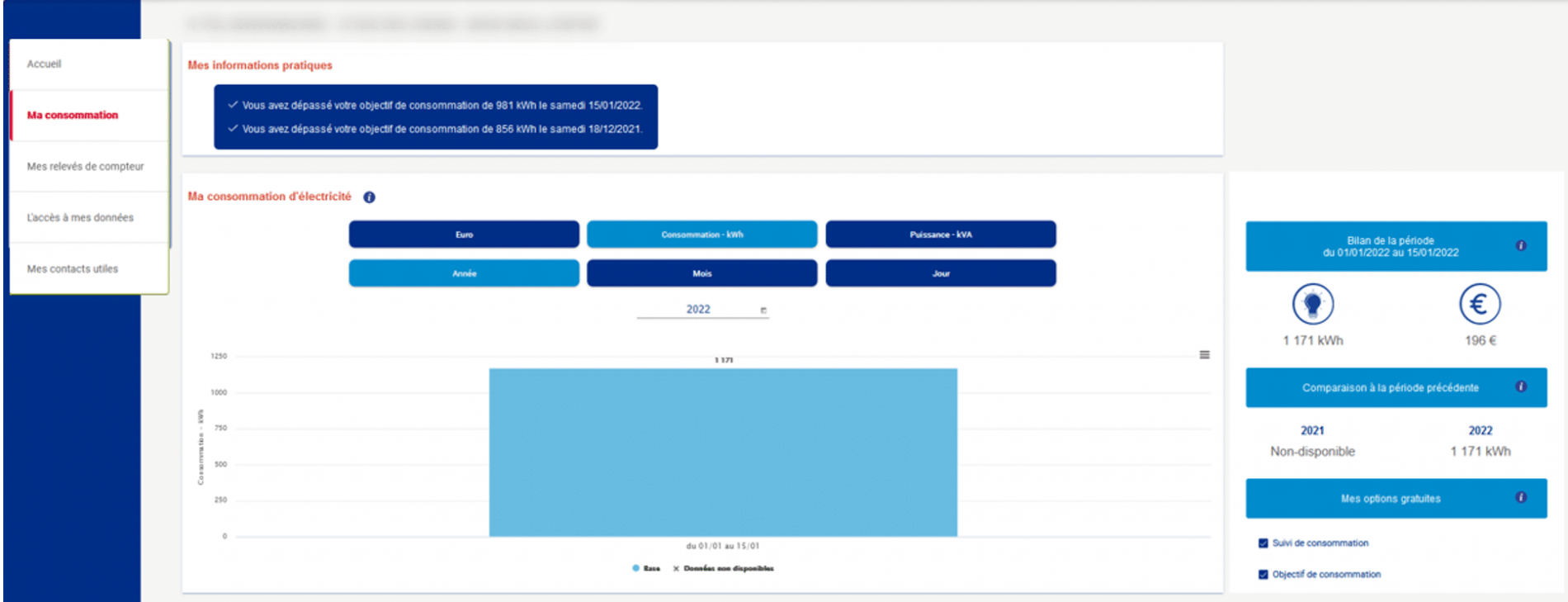 Application permettant aux clients (particuliers et professionnels) de consulter leur(s) contrat(s) ainsi que leur suivi budgétaire ou leurs habitudes de consommation.